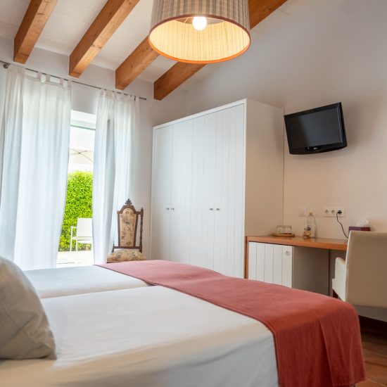 Cada una con estilo propio, todas cuentan con terraza. Algunas conservan el aire tradicional en la casa principal; otras, reinventadas con un toque más actual, mantienen su esencia original. En diferentes zonas del hotel, pero todas pensadas para descansar, desconectar y disfrutar del aire libre.